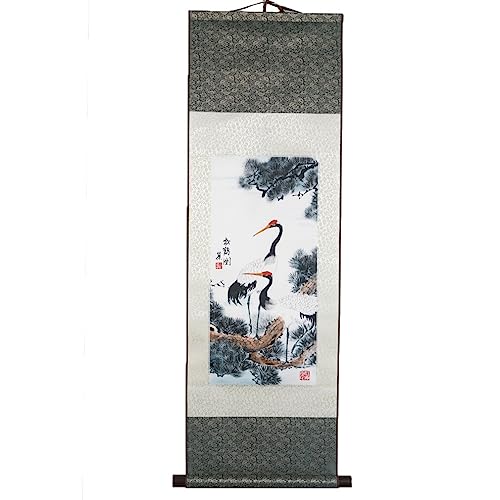 lachineuse – Kakemono japansk kran – gobeläng – japansk hängdekoration – 100 x 30 cm – symbol för hållbarhet – japanskt målningstryck – grå färg – presentidé Japan Asien
