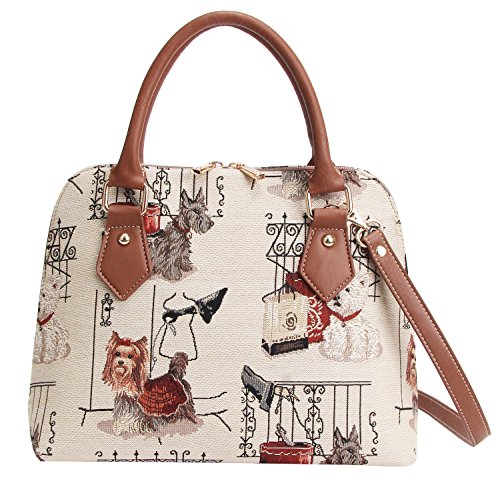 Signare Gobeläng handväskor axelväska och axelremsväskor för kvinnor med djurdesigner, Mode hund, Convertible Bag