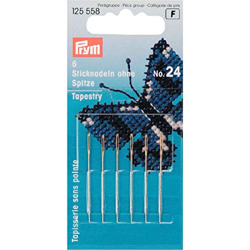 Prym 125558 Brodernålar Nr 24 Med Gobeläng Trubbig Punkt 6 Bit Set, 0,80 mm x 37 mm Storlek, Guld/Silver