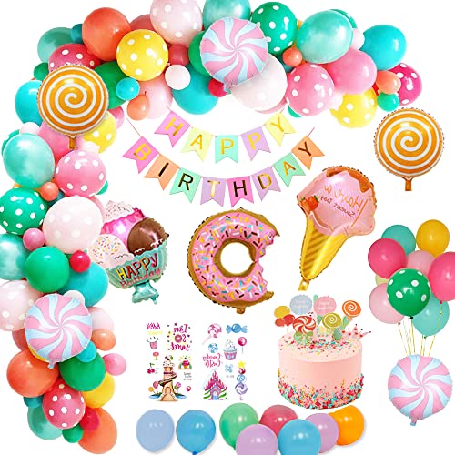 weeyin Candyland Söta festdekorationer med grattis på födelsedagen-banderoll, godis, munk, glass, folieballong för Candyland-fest, bröllop, födelsedag