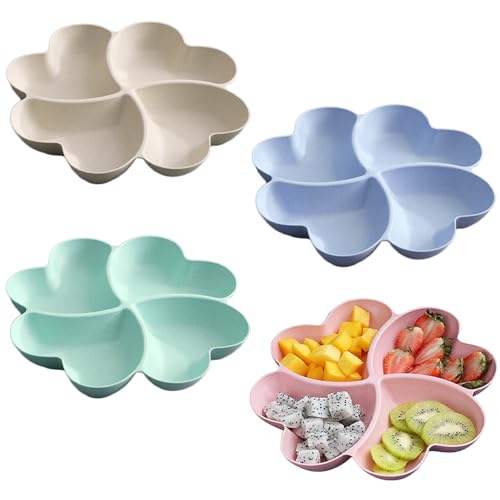 Snackstallrikar med fack, snackstallrikar med 4 fack, 4 stycken återanvändbara mellanmålsbrickor halkfria delade godislåda för nöt, godis, torkad frukt, mat, hem, fest, snacks, desserter, frukt