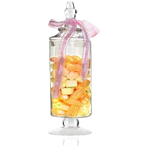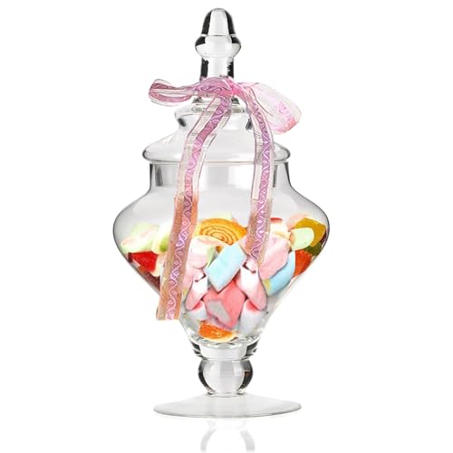 Angoily godisskål med glasfot och lock genomskinliga godisskålar kristall – godisglas kakburk dekorativ apoteksglas godis buffébehållare för bufféfest hem kontor