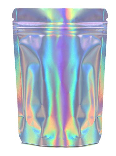Rightpak Holografisk återförslutningsbar luktsäker, silver dragkedja påsar stående mylar hem kök festförvaring mat, prov, ört, smycken, godis, kaffebönor påsar 100 st, 19 cm x 26 cm