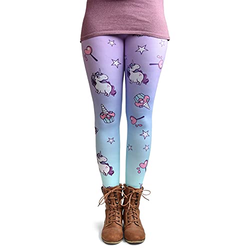 cosey - Enhörningslinje – färgglada leggings med tryck (en storlek) – olika enhörningsdesign, Enhörningar och godis, En Storlek