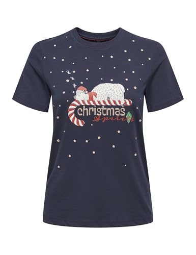 ONLY Onlxmas Life Yrsa Christmas S/S topp Jrs, natthimmel/tryck: sovande godis, dam S, Natthimmel/tryck: sovande godis, S
