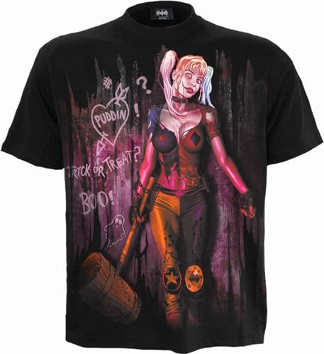 DC Comics – Harley Quinn – bus eller godis – tryck på framsidan svart, Svart, XL