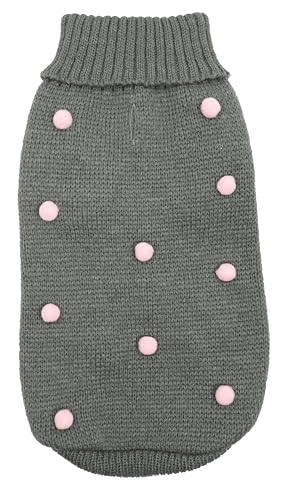 Skiva – godisaffär hundtröja 20 cm rygglängd solid polotröja sammet pom pom koppel hål och maskintvättbar | grå, 3XS