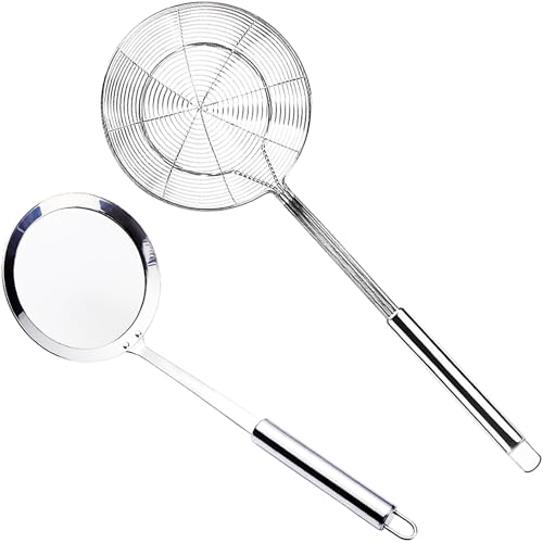 Skumslev rostfritt stål, spinning sil, fin sil skumsked, spindelsil skimmerslev, skumsked filtersats, lämplig för matlagning, stekning, gödning och slev mat i köket (14 cm & skumslev)
