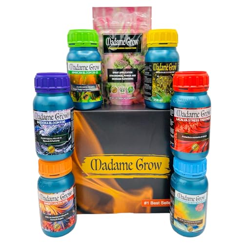 MADAME GROW - Organiskt gödselmedel - Gödselmedel Terapeutiska växter Tillväxt, näring, blomning och gödning av knoppar - För växter 420-7PACK - PREMIUM KIT - (6x250 mL+30 Gr)