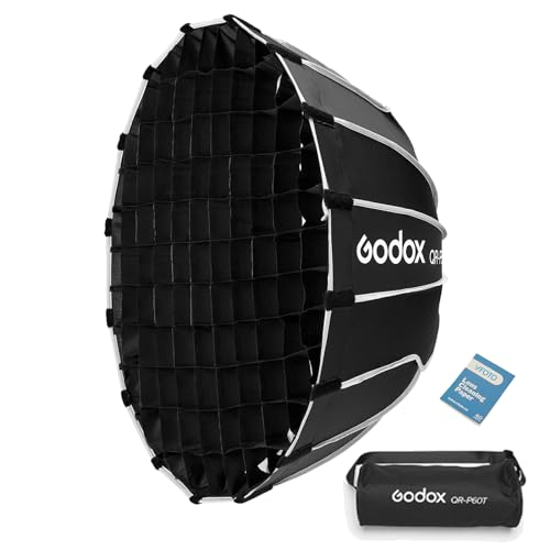 GODOX QR-P60T parabolisk softbox, 60 cm/23,6 tum snabbfrigörande mjuk låda med vaxkaknät, Bowens-fäste för studio, videolampa SL60W SL100D MS200-V MS300II-V DP400III-V LA150R LA300Bi