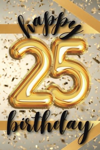 Happy 25th Birthday: 25th Birthday Card For 25 Year Old - 2 5 Balloons Gold Confetti & Ribbons Notebook Gift