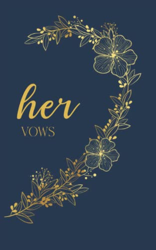Her Vows: Vow Book for Wedding: Right Side Navy Blue and Gold Floral Heart - ONE Blank Lined Booklet - Mix and Match - Select His - Her - Our - in ... Ceremony Keepsake Card - Bridal Shower Gift