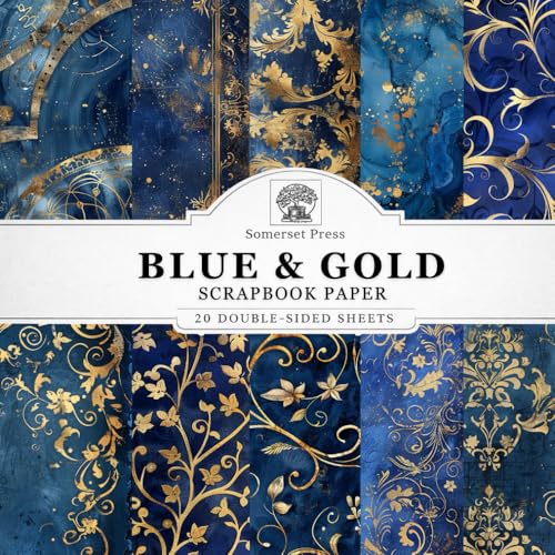 Blue & Gold Scrapbook Paper: 20 Double-Sided Blue and Gold Patterned Sheets for Scrapbooking, Junk Journals, Card Making, Decoupage, Origami, Paper Crafts, DIY Projects and Mixed Media