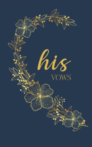 His Vows: Vow Book for Wedding: Left Side Navy Blue and Gold Floral Heart - ONE Blank Lined Booklet - Mix and Match - Select His - Her - Our - in ... Keepsake Card - Bridal Shower Groom Gift