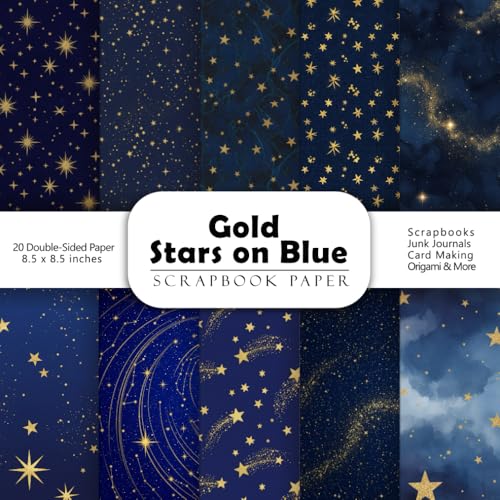 Gold Stars on Blue Scrapbook Paper: Double-Sided Decorative Craft Papers for Junk Journals, Wrapping, Card Making, Mixed Media & More