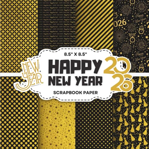 Happy New Year Scrapbook Paper: Decorative Double-Sided Black & Gold Craft Papers for Junk Journals, Wrapping, Card Making & Mixed Media Projects