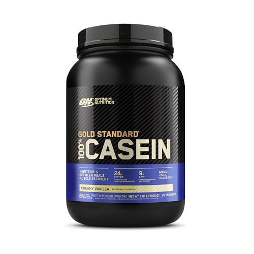 Optimum Nutrition Gold Standard 100% Casein långsamt proteinpulver med zink, magnesium och aminosyror, för bättre muskeltillväxt och återhämtning över natten, vanilj-smak, 28 portioner, 924 g