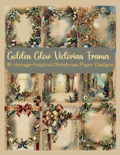 Golden Glow Victorian Frames: 35 Vintage Christmas Scrapbook & Junk Journal Pages – Antique Holiday Ephemera