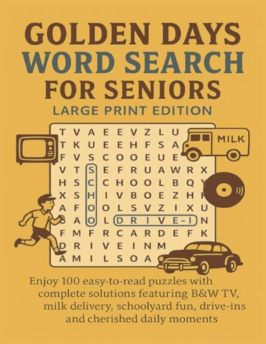 GOLDEN DAYS WORD SEARCH FOR SENIORS LARGE PRINT EDITION: Enjoy 100 easy to read puzzles with complete solutions featuring B&W TV, milk delivery, schoolyard fun, drive ins and cherished daily moments