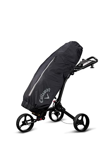 GOPLUS Golf Trolley, golftrulle, 3 hjul med justerbart handtag, fotbroms, golfvagn vikbar med paraply- och mugghållare och vattentät väska, golfcaddy golf push vagn (grå)