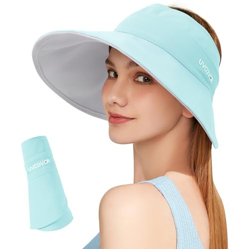 AYPOW Solskydd för kvinnor, retro solhatt solhatt vändbar golf, absorberande strandhatt justerbar visir hatt för golf cykling fiske tennis - grå och beige, Blå och grå, one size