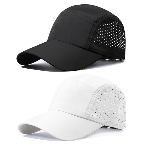 TAGVO 2-pack snabbtorkande basebollkeps, sol UV-skydd sport löpning kepsar hatt av lätt vikbart andningsbart nät, utomhus justerbara solhattar för golf tennis vandring fiske cykling promenader, Svart