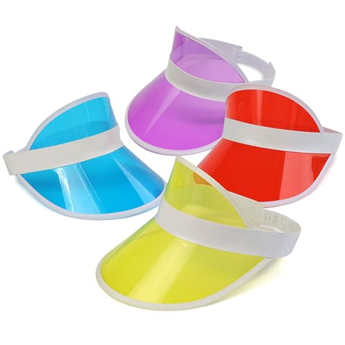 Unisex neon solskydd för män kvinnor, 4 st unisex 80-tal retro stil neon solskydd plast golf visir pannband keps för pokerfest tennis UV-skydd hatt, Röd, blå, lila, gul, 5 7/8