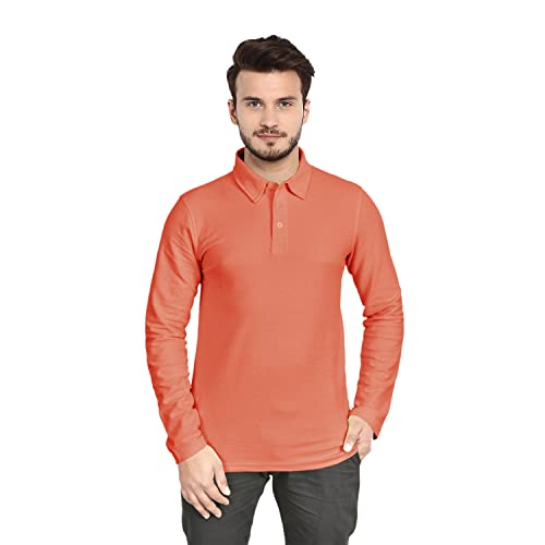Sleepdown Ledig enkel pikétröja för män, långärmad bomullstopp, t-shirt, sport, golf, tennis, skjortor, Orange, XL