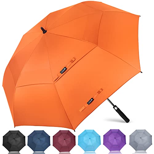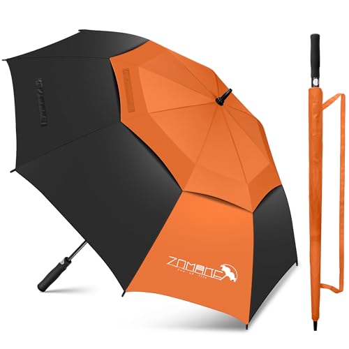 ZOMAKE Stor Golfparaply 68 Tum,XXL Golfparaply Stormresistent Stor Automatisk Öppen,Paraply Extra Stor För 2-4 Personer Dubbeltäckt Ventilerad,Golf Paraply För Kvinnor Män(Orange-Svart)
