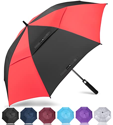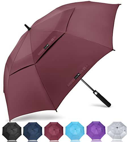ZOMAKE Paraply Vindtät,Paraply Storm Resistant Large,62Tum XL Golf Paraply Med Automatisk Open Close För Män Kvinnor(Vinröd)