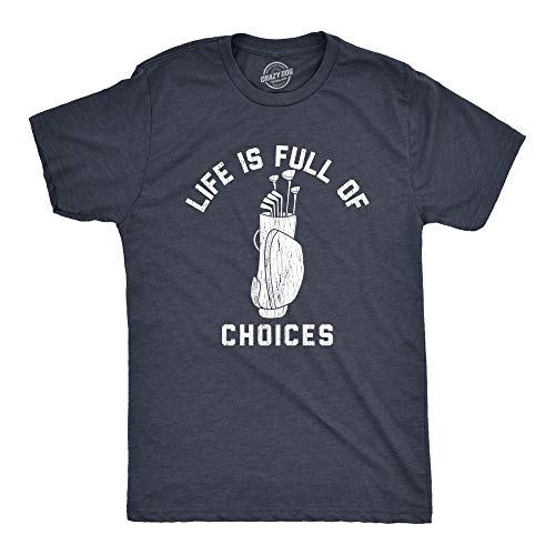 Crazy Dog Mens T Shirt Life is Full of Choices Funny Golf Tee Pun Shirt with Dad Joke Hilarious Golfing Fathers Day Tee Heather Navy L