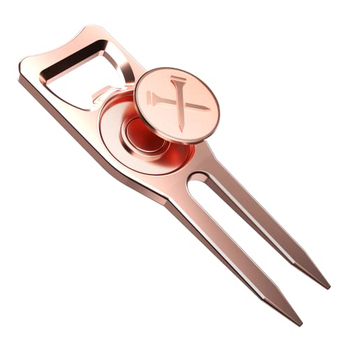 Blue Tees Golf - 6-i-1 divot verktyg – ultimat greenverktyg – divot gräsreparation – balmarkör – klubb te – spårrengörare – flasköppnare – justeringsverktyg för putting – rosa