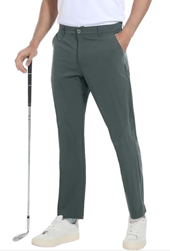Boyzn herr golfbyxor med 5 fickor lätt stretch snabbtorkande casual resa arbete klänning byxor, Ljusgrå, 36W / 32L