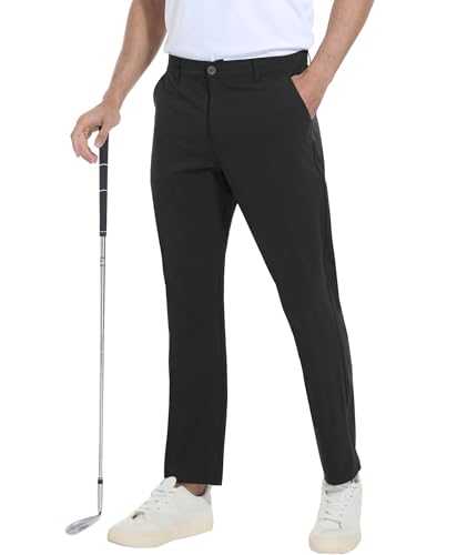 Boyzn herr golfbyxor med 5 fickor lätt stretch snabbtorkande casual resa arbete klänning byxor, svart, 36W / 32L