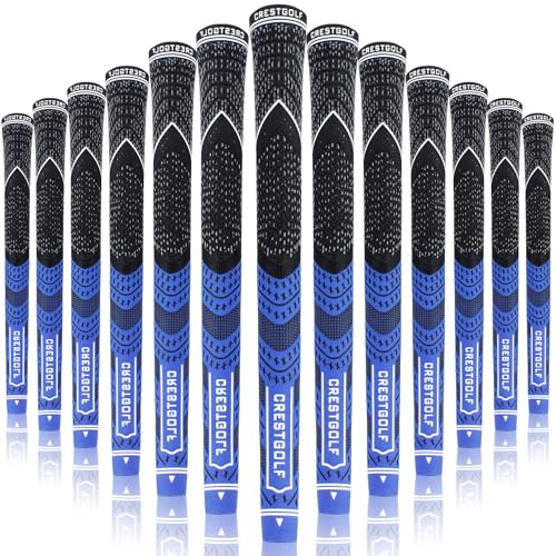 CRESTGOLF uppdaterade multisammansatt golfgrepp för golfklubbor set av 13, mer halkfri, ekologisk bomullsgarn trådteknik, mellanstorlek eller standardstorlek för dig Mörkblå Midsize