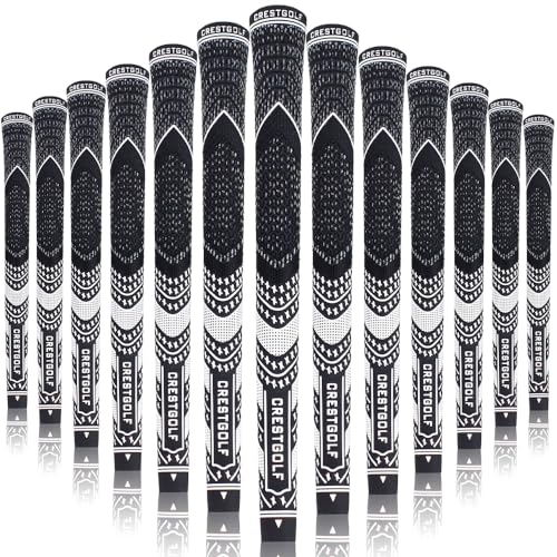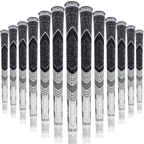 CRESTGOLF uppdaterade multisammansatt golfgrepp för golfklubbor set av 13, mer halkfri, ekologisk bomullsgarn trådteknik, mellanstorlek eller standardstorlek för dig Grå Midsize