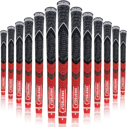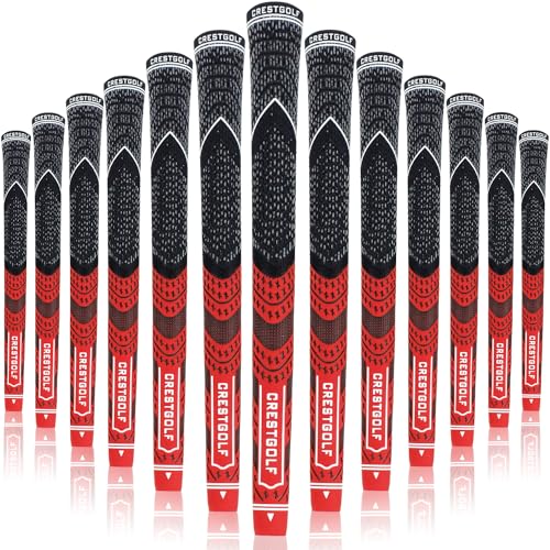 CRESTGOLF uppdaterade multisammansatt golfgrepp för golfklubbor set av 13, mer halkfri, ekologisk bomullsgarn trådteknik, mellanstorlek eller standardstorlek för dig Röd Röd Midsize