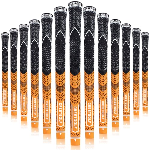 CRESTGOLF uppdaterade multisammansatt golfgrepp för golfklubbor set av 13, mer halkfri, ekologisk bomullsgarn trådteknik, mellanstorlek eller standardstorlek för dig Orange Midsize