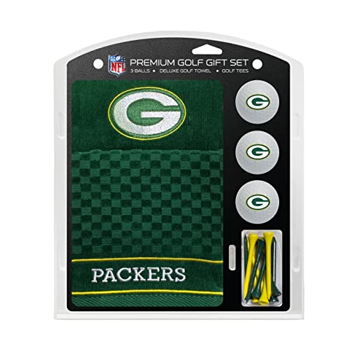 Team Golf NFL Green Bay Packers Presentset med broderad golfhandduk, 3 golfbollar och 14 golfpeggar på 7 cm, enligt regelverket, handduk vikt tre gånger på 41 x 56 cm i 100% bomull