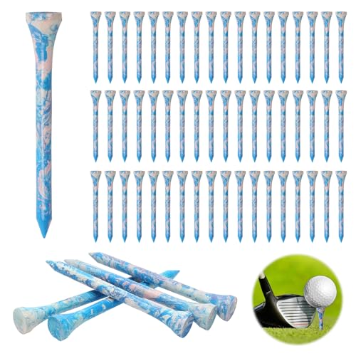 POXIAOER Golfpeggar, 60-pack bambubolpegar 70 mm, 7 cm, 2-3/4 tum golftröja biologiskt nedbrytbara hållbara golftillbehör, böjd topp låg friktionsmotstånd (stil A)
