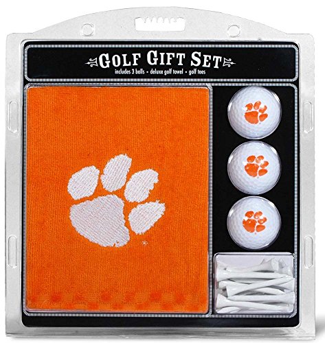 Team Golf NCAA Clemson Tigers-presentset med broderad golfhandduk, 3 golfbollar och 14 golfpeggar på 7 cm, enligt regelverket, handduk vikt tre gånger på 40 x 56 cm i 100% bomull