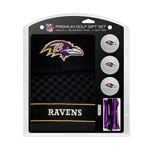 Team Golf NFL Baltimore Ravens Presentset med broderad golfhandduk, 3 golfbollar och 14 golfpeggar på 7 cm, enligt regelverket, handduk vikt tre gånger på 41 x 56 cm i 100% bomull