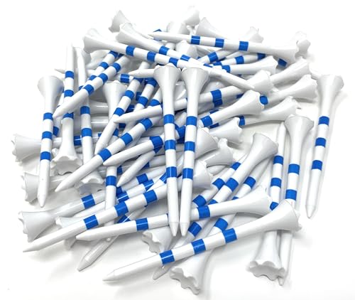 NorthPointe 3 ¼" golfpeggar plast – vit/blå ränder – 100 golfpeg i plast (100, 3 1/4 tum)