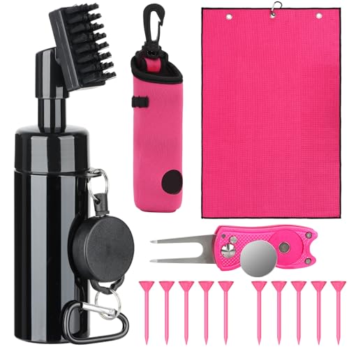 HUIJUTCHEN Golftillbehör, golfklubbsrengöringsborste med vattensprayflaska, mikrofiber, golfhanddukskit för golfklubbor, väskor, golfboll, förvaringsväska, plast, golfpeggar, set med golfgåvor för