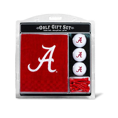 Team Golf NCAA Alabama Crimson Tide-presentset med broderad golfhandduk, 3 golfbollar och 14 golfpeggar på 7 cm, enligt regelverket, handduk vikt tre gånger på 40 x 56 cm i 100% bomull