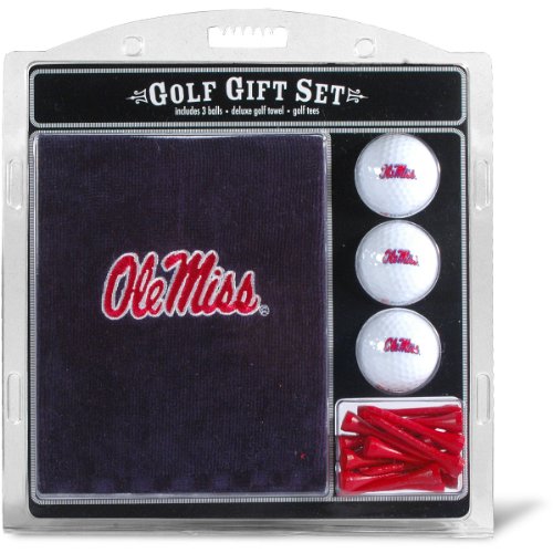 Team Golf NCAA Ole Miss Rebels-presentset med broderad golfhandduk, 3 golfbollar och 14 golfpeggar på 7 cm, enligt regelverket, handduk vikt tre gånger på 40 x 56 cm i 100% bomull