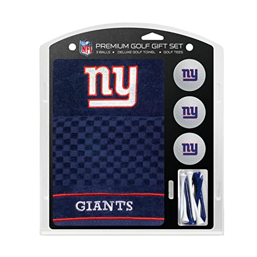 TEAM GOLF NFL New York Giants presentset: Broderad golfhandduk, 3 golfbollar och 14 golfpeggar 2–3/4 tum reglering, tredelad handduk 40 x 56 cm och 100% bomull