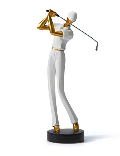 Amoy-Art Golf statyett staty golfspelare dekoration modern skulptur hem gåvor bord bordsuppsats hantverk polyresin konst vit 24 cm