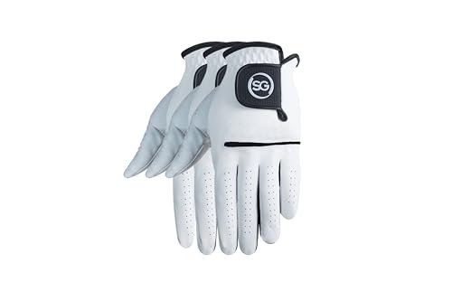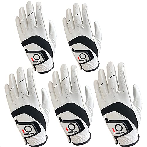 Golfhandskar män vänster höger hand Cabretta läder multipack alla väder mjukt värde 5 st, golfhandskar män för högerhänta golfspelare regngrepp bekvämt litet medium stor X-Large (L, vänster)
