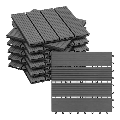 WOLTU Golvplattor för utomhusbruk, balkong/trädgård/terrass, WPC-golv, kompositträ, med 11 paneler, 30 x 30 cm, grå
